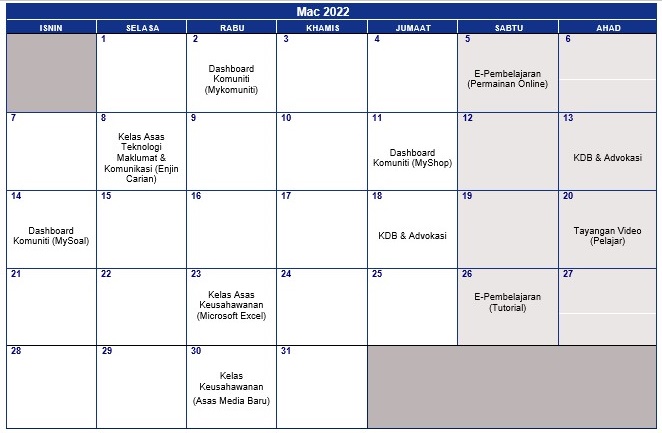 Jadual Aktiviti Mac 2021