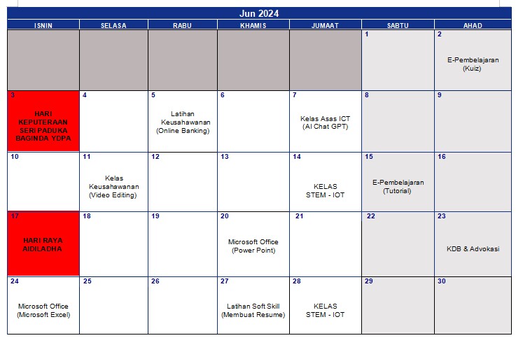 Jadual Aktiviti Jun 2024